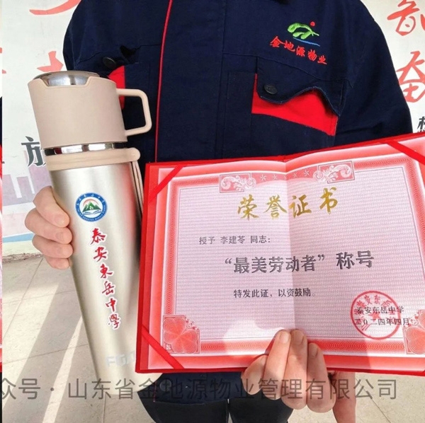 我公司东岳中学物业项目部张尚臣同志、李建苓同志受到表彰并获得了“劳动者”荣誉证书和奖品。校方领导对其工作给予了高度肯定和认可。